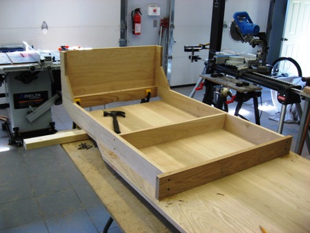 Rather than using plywood, I decided to make the body from red oak. The boards are biscuit-jointed and glued.