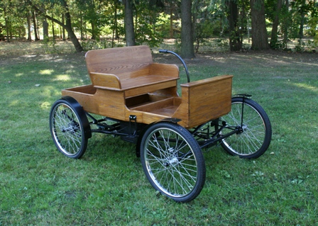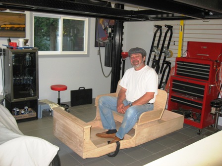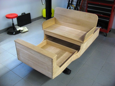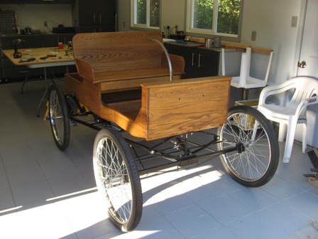 After three coats of Sikkens Dark Oak stain, the body is installed on the chassis and it's ready to go for the inaugural run.