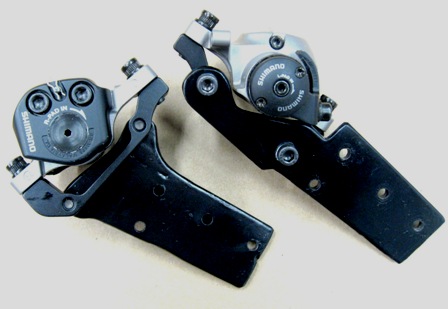 The caliper adapter plates took a lot of fiddling to make fit right. Disks and calipers are from the local bicycle shop.
