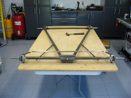 Steering kingpin tacked up, ready for welding