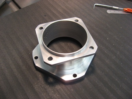 The adapter was machined from a 4-1/8"D x 2" bar of aluminum.